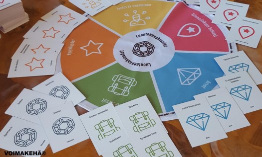 Resurssit ovat niitä asioita, vahvuuksia, ihmisiä ja palveluita, jotka mahdollistavat esimerkiksi opiskelun, työnteon tai perhe-elämän. Näitä tulee harvoin ajatelleeksi, jos resursseja on riittävästi, mutta resurssien puute hankaloittaa elämää. Vankiopiskelijoiden voi olla vankeusaikana haastavaa määritellä mitä resursseja eli voimavaroja heillä on vankeusaikana ja mitä sen jälkeen. Voimakehän korttien avulla voisi kuitenkin pohtia esimerkiksi sitä millaisia resursseja vapautumisen jälkeen tarvitaan, jotta pystyy opiskelemaan ja elämään rikoksetonta elämää (asunto, opiskelupaikka, opintotuki, ajanhallinnan taidot jne.).